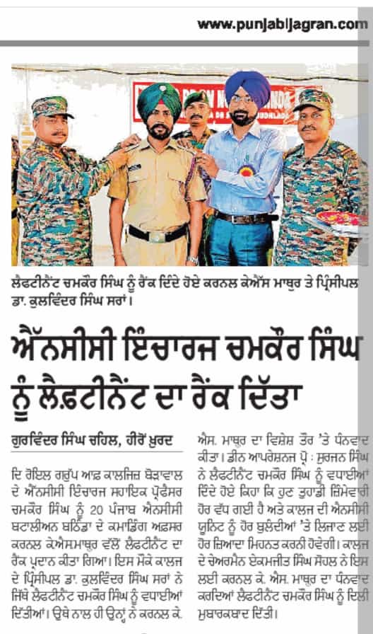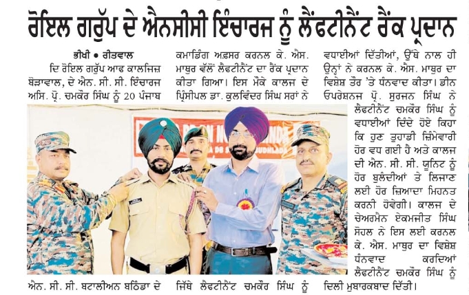 The Royal Group of Colleges Borawal, District Mansa, Punjab. Pin 151502.